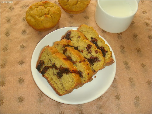 | Adapted from Simply Vicky Makes 1 mini-loaf + 2 medium sized muffins ~*What U Need*~ Pumpkin puree - 1/2 cup All purpose flour - 1/2 cup Whole Wheat flour - 1/2 cup Flaxseed - 2 tbsp Baking soda - 1/2 tsp Baking powder - 1/4 tsp Cinnamon powder - 1/2 tsp Dried ginger - 1/4 tsp Cloves, nutmeg powder - 1/4 tsp(I skipped) Sugar - 1/2 cup Eggs - 1 Canola oil - 1/4 cup Water - 1/2 of 1/3 cup How I Made it: To make pumpkin puree, cut open the pumpkin and deseed. Cut into cubes and put it into the pressure cooker with 1/2 cup water. Pressure cook for 3 whistles or till a tooth pick inserted moves in freely. Cool to room temperature and scoop out the flesh. Grind into puree with as little water as possible. Preheat oven to 350 F/175 C. Sieve dry ingredients in a bowl and set aside. Whisk oil and sugar. Add the egg and whisk. Add pumpkin puree and water and combine well. Add the dry to the wet and fold gently. Bake in greased loaf pan for 35-40 mins. Cool in the pan for 10 mins and then remove and cool completely in a wire rack. |